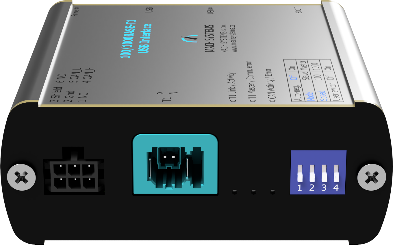该设备可将100BASE-T1/1000BASE-T1 ECU或网络连接至无内置网卡的计算机(如超极本、迷你PC等)。 通信速率与主从配置既可通过链路伙伴自动协商设置,也可由用户手动配置 。设备支持通过虚拟COM端口读取状态信息及端口诊断数据,还可用作USB转CAN(/FD)接口 。