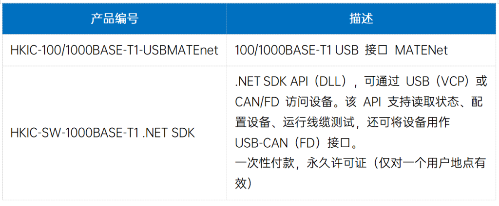 • 虚拟COM端口支持通过编程方式读取设备状态与配置参数,并可同步启用USB转CAN(/FD)接口功能(此功能可与100/1000BASE-T1网卡功能同时运行)