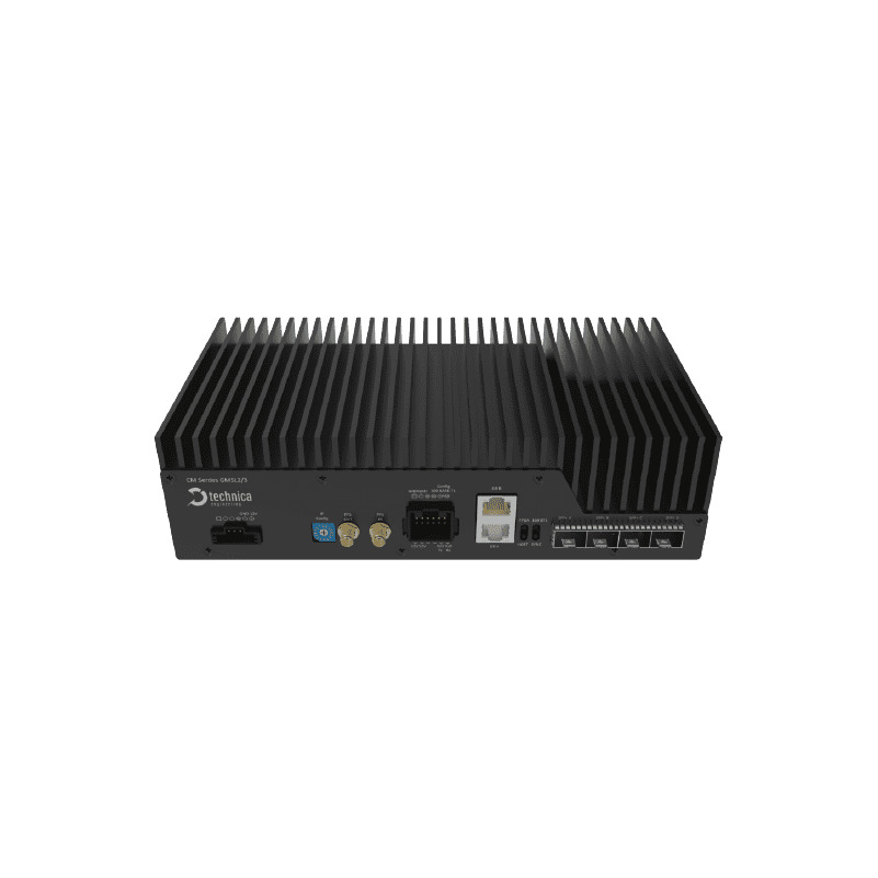 我们的捕获模块 SerDes 可用于记录多达 4 个通道的 GMSL 2/3 数据,因此它有 8 个端口(4x 传入流量,4x 传出流量)。该设备有两个 MATE-AX Quad Fakra 连接器,用于 GMSL2/3 传入和传出流量线路。为了发送捕获的流量,它有 4 个 SFP+ 插槽。通过这些 SFP+ 端口,记录的数据可以传输到数据记录器或 PC。