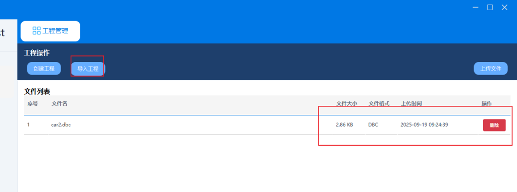 • 导入现有工程:允许用户打开和继续之前保存的项目文件。这能完整恢复之前的工作状态,包括所有硬件配置、报文数据库、发送/接收设置等。