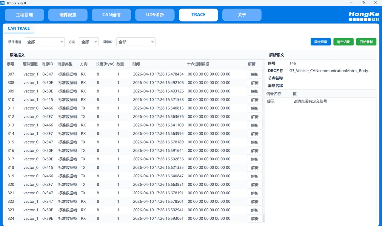 • TRACE 回放与录制:支持 BLF, ASC 等格式的报文录制与回放