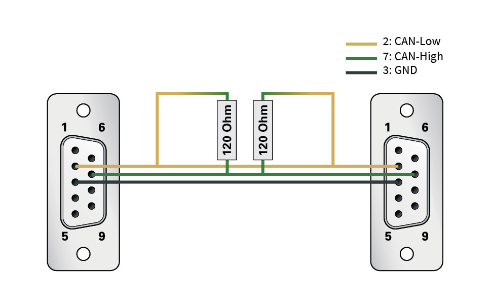 • PCAN-Cable 2内置终端电阻,适用于对两个高速CAN集线器进行简单直连的场景。